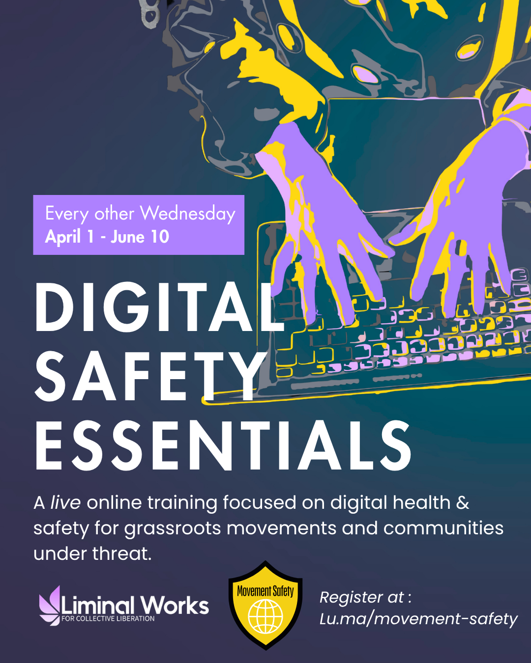 The small but mighty queer-led team at Liminal works is providing an on-ramp to digital safety for community-based groups and movements. This live training is on every other Wednesday until June 10. In the 1 hour virtual live training, the essentials covered will be of: