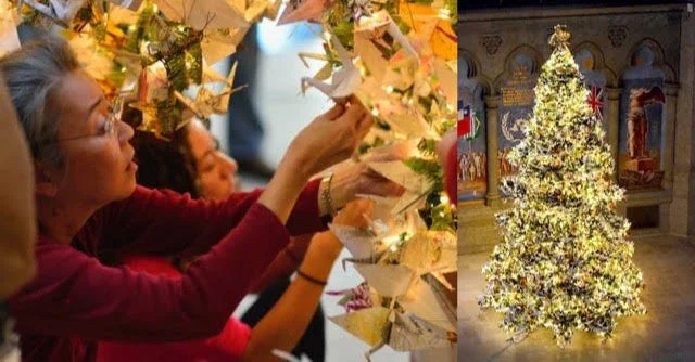 The World Tree of Hope is the largest origami holiday tree in the world, standing over 23 feet tall and decorated with over 17,000 origami cranes and stars, each hand folded and inscribed with wishes for the future of the world. The Tree is created as a symbol of global unity and hope, to promote peace, love and humanitarian action. http://www.worldtreeofhope.org/